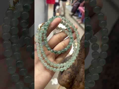 This elegant necklace features small, perfectly round jade beads in a beautiful icy green or "water green" tone. The stones are highly translucent with a smooth, glassy texture, allowing light to pass through and creating a soft, luminous glow. Subtle natural inclusions and color variations add depth and character to each bead. Strung together in a long strand and finished with a decorative gold clasp, this piece is lightweight, delicate, and perfect for layering or wearing alone for a touch of understated luxury.